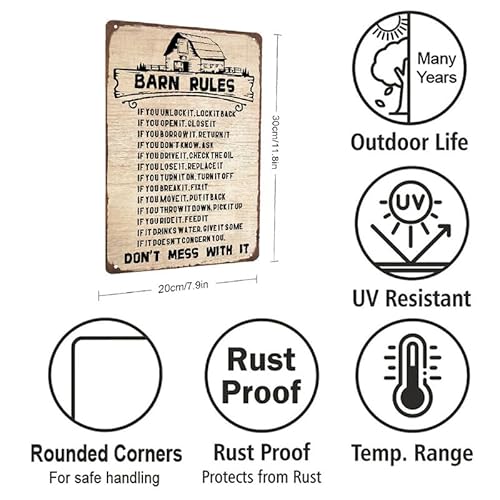 Overall, the “Barn Rules Tin Sign Vintage Retro Metal Sign Farm Farmhouse Ranch Wall 8×12 inch” is a delightful piece that adds a unique flair to any setting. It’s best suited for individuals who appreciate the vintage farmhouse style and want a conversation starter for their home or business. For its price, the quality and aesthetic appeal make it a worthwhile investment.