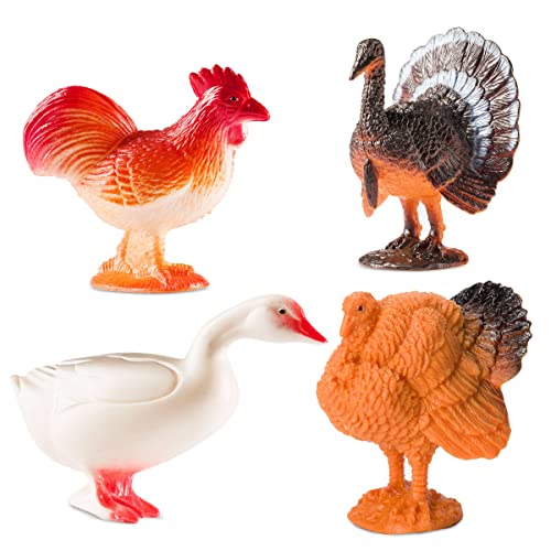 - Pack of 12 – Assorted Farm Animal Toys: This set brings together 12 assorted figures, including sheep, horses, goats, ducks, hens, roosters, turkeys, cows, and pigs, measuring between 3-5 inches.