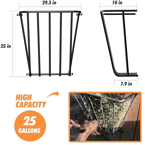 AMPLE HAY STORAGE: With a substantial 25-gallon capacity, this wall-mounted hay feeder keeps your animals well-fed with minimal refills, which is a huge time-saver.