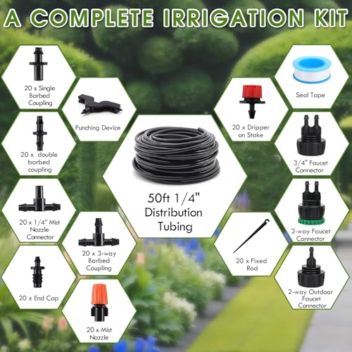 Benefit: The kit features two different types of nozzles, which can be adjusted individually to meet the specific water needs of various plants.